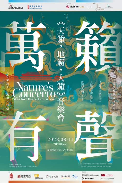 「万籁有声:《天籁,地籁,人籁》」五周年音乐会主题围绕中华文化,透过千六年敦煌与六百年故宫贯穿中华二千年历史,通过音乐与文物讲述千年「天、地、人」的 关系。而音乐会中所有乐曲均由乐团两位驻团作曲所原创,创作灵感来自敦煌洞窟内之经变图与佛塑像,以及故宫的文物、建筑,及其故事。同时,部分乐曲内容更取材自唐朝的琵琶古谱,并由多件仿古乐器演奏,是为「古曲新传, 古谱入音」,希望将不同的时空以音符串连、引发回响。