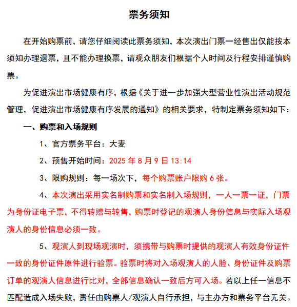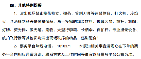 5、请观众提前半小时入场,迟点可能会错过部分演出,须听从工作人员指引,有序进场,就近入座。
